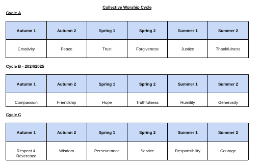 Putting it simply, it is a way of learning about the beliefs and principles which give our school its identity and shapes how we treat one another or how decisions are made. These values are mainly drawn from the bible and the teachings of Jesus, and as such are frequently referred to as Christian values; we believe that they are the values that all of us draw upon when part of a community to ensure that each and every one of that community is supported, nourished and cared for in whatever they do.